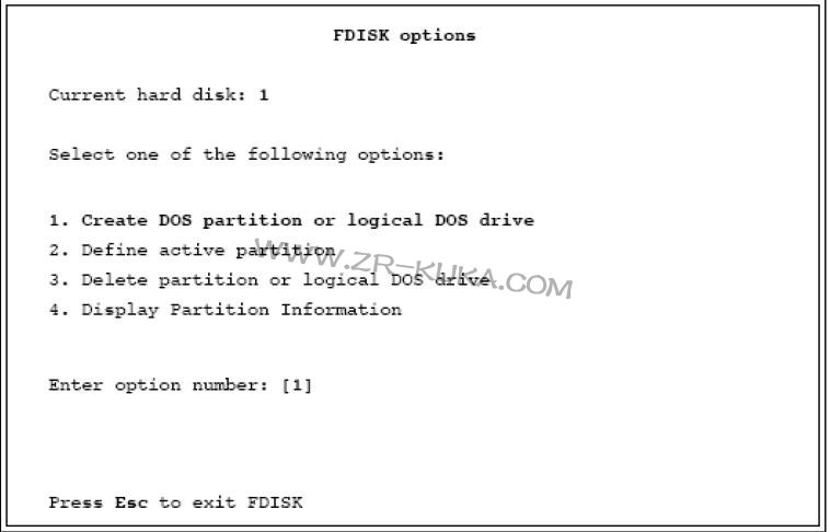 一旦刪除現(xiàn)有的分區(qū),硬盤必須用選項“1”分區(qū)。