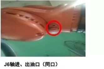 與上面幾個(gè)軸操作方法一樣,唯一不同的是J6軸的加油口、出油口在同一位置,共用。