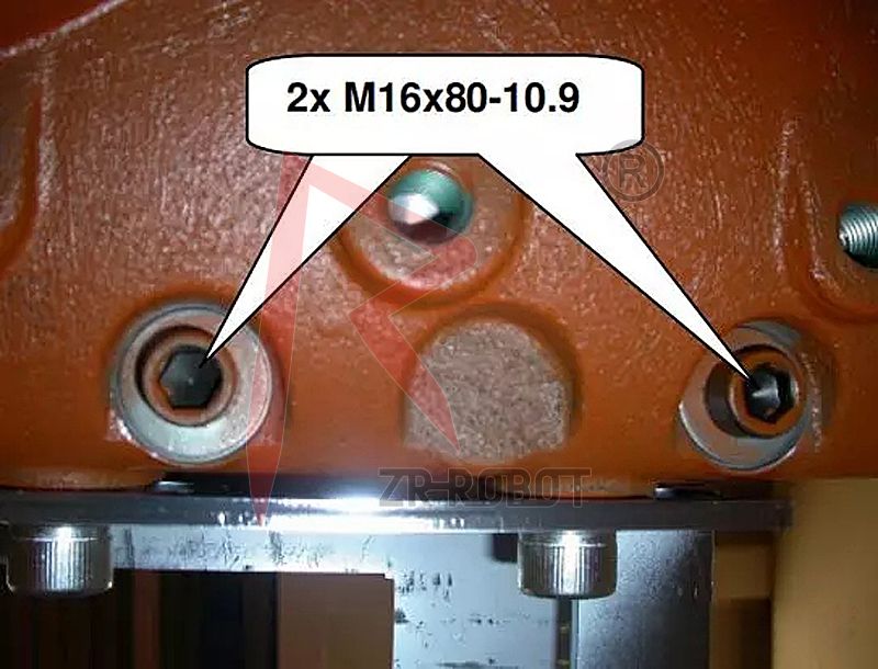 8.重新擰緊軸承塊上的兩個M16x80-10.9螺釘,如下圖