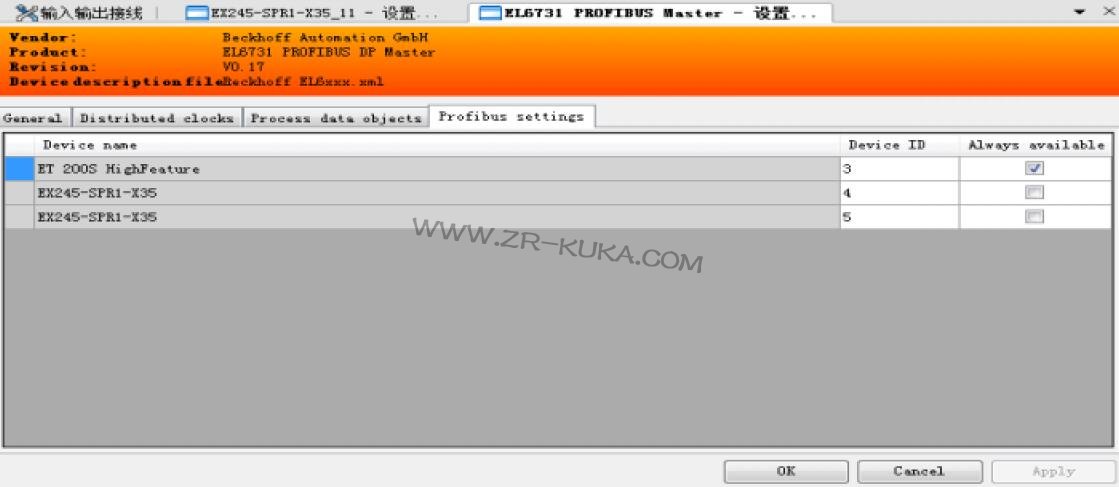 在窗口項目結構的選項卡設備中用右鍵點擊現場總線主機。