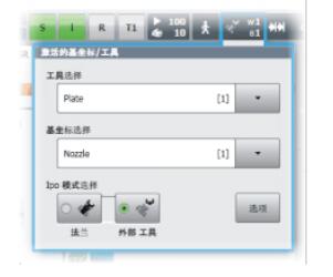 通過在手動移動選項選項窗口中選擇外部工具控制器切換: 所有運動現在均相對外部 TCP ,而不是由機器人導引的工具。