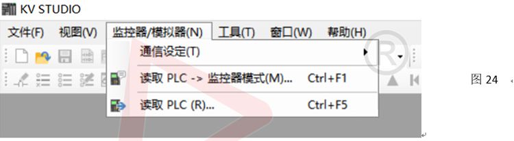 C.完成選擇后,監(jiān)控器/模擬器菜單(圖24)選定讀取PLC后,調(diào)試PC將會從PLC控制器下載程序(圖25);