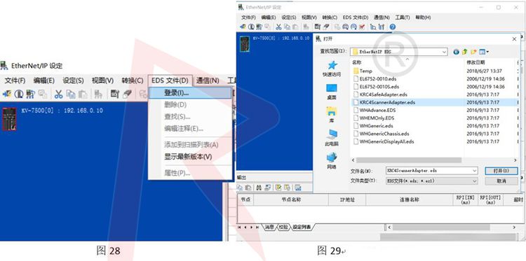 B.如圖28選擇EDS文件(D)欄來添加機器人的設備描述文件,按下登陸后進入圖29界面,在調(diào)試PC里找到機器人的設備描述文件,并選擇打開;