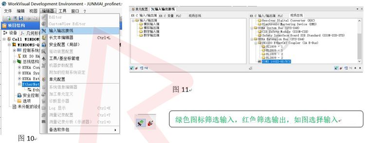 a.如圖10點擊編輯器->輸入輸出接線,進入界面如圖11,左側(cè)選擇數(shù)字輸入端,右邊找總線Ethernet/ip