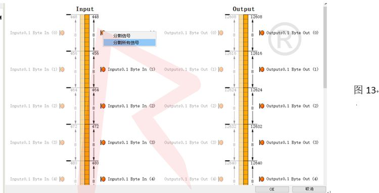 b.將BYTE分割成BIT類型,在右下角找到并點擊信號編輯圖標,如圖12紅色區(qū)域,然后進入圖13,選擇分隔所有信號后,點擊OK鍵;